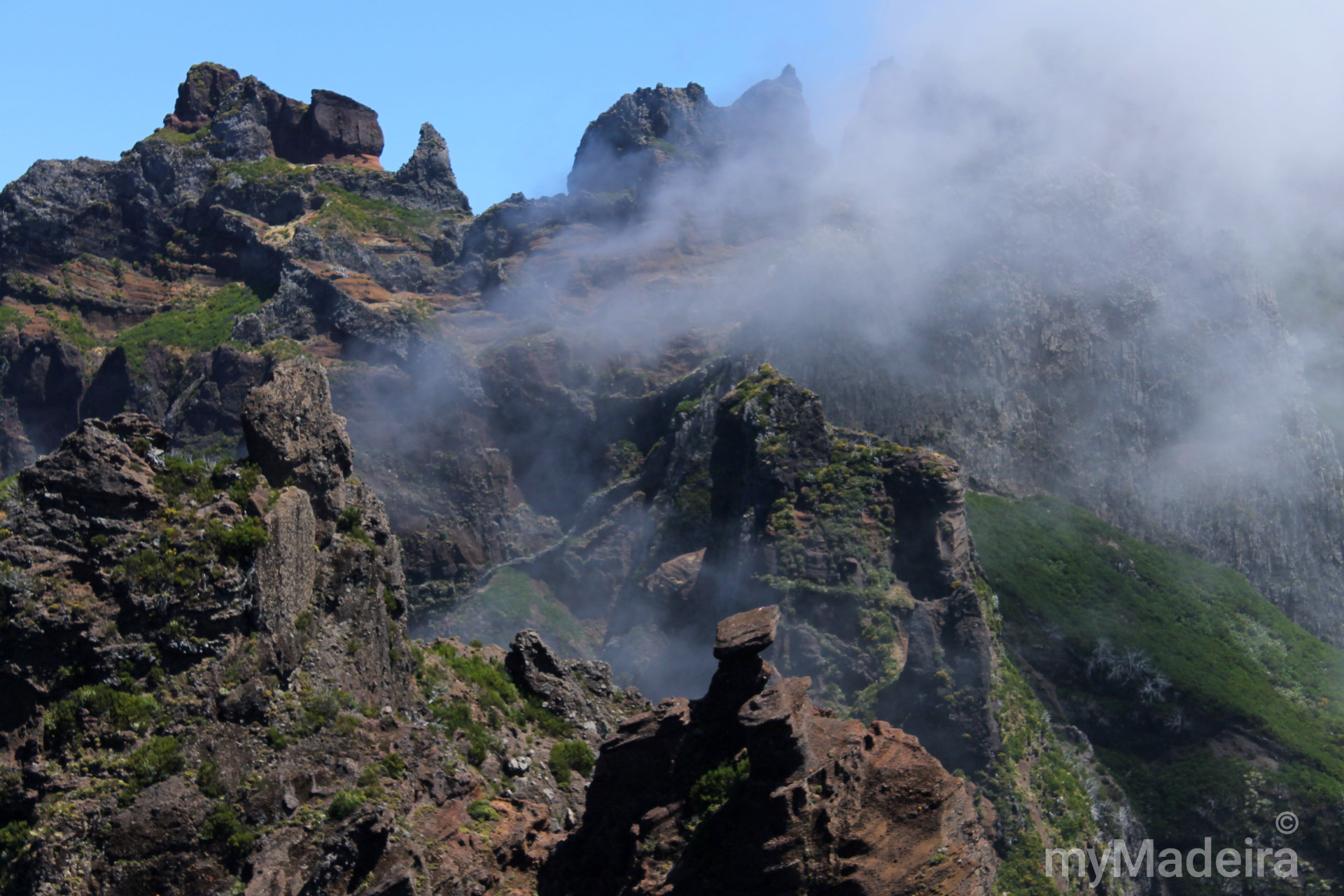 A PR1-es Vereda do Areeiro a leghíresebb túraútvonal Madeirán. A Pico do Areeiro-t köti össze a Pico Ruivo-val, ami sziget legmagasabb hegycsúcsa. Mondanom sem kell, nem értünk oda időben, parkolóhely már nem volt. Az útszélén sikerült megállni, néhány kanyarral a Pico do Areeiro parkolójától lejjebb. Akkor még meglehetett csinálni, mára már tilos megállni. 2019-ben még nem volt akkora tömegturizmus odafent, mint ma, így senkit nem adadályoztuk a feljutásban.